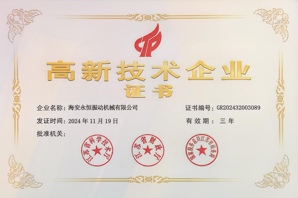 當前所在的位置:海安永恒振動機械有限公司 >> 資質證書 >> 高新技術企業證書