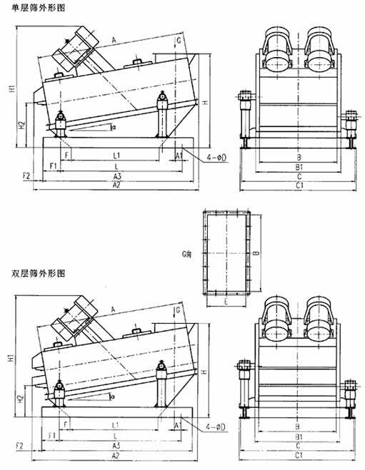 多層直線振動篩是由篩箱和振動器,支撐彈簧、隔振架、二次隔振彈簧加上電動機及支架等構成。旋振篩具有物料運行的軌跡長,篩面利用率高等優點,調節上、下兩端重錘的相位角,可改變物料在篩面上的運動軌跡